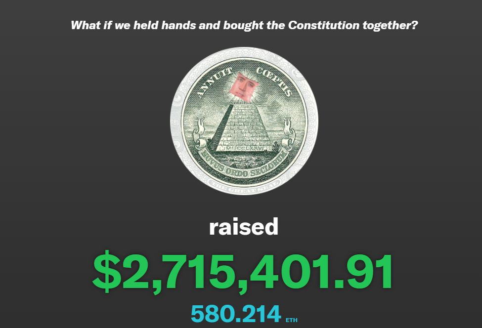Для этого в ConstitutionDAO начали сбор средств в ether через площадку краудфандинга Juicebox. Впрочем, пока что проект существенно отстает от намеченной цели: собрано лишь ~$2,7 млн (580,214 ETH).