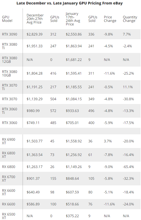SponsoredМеньше всего с конца прошлого года потеряла видеокарта AMD RX 6900 XT. Напротив, она выросла за период с декабря 2021 года по январь 2022 года на 3,7% до ~$1558.