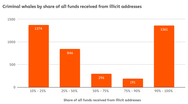 Аналитики Chainalysis выявили более 4000 криминальных китов, владеющих криптовалютой на общую сумму более $25 млрд