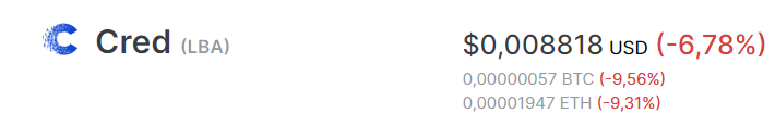 В Cred подсчитали свои долговые обязательства в размере до $500 млн. В то же время компания имеет на балансе только $100 млн. На фоне объявления о банкротстве, нативный токен Cred (LBA) обвалился почти на 7% до $0,0088. В недельном масштабе токен просел на 12%.
