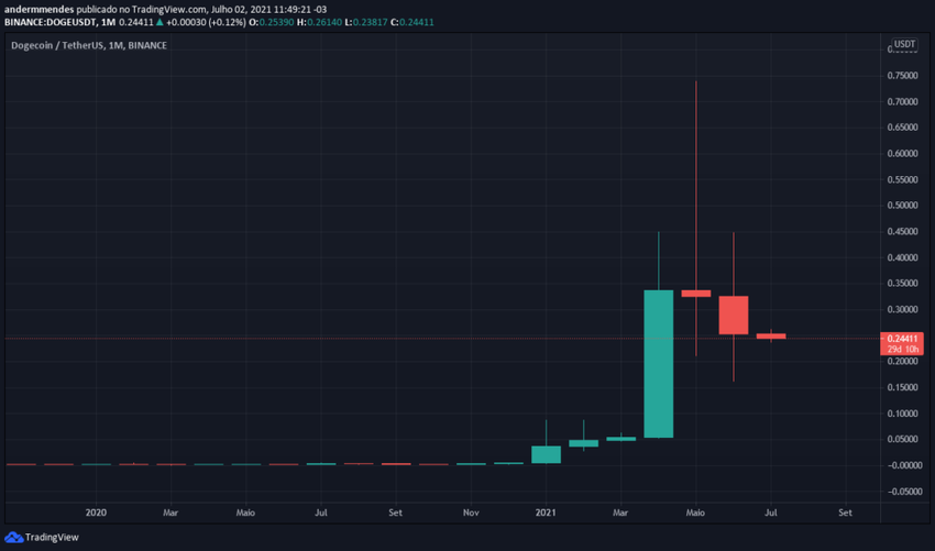 В начале года монета-мем продавалась за $0,005, но в мае она стоила уже $0,73. Хайп и спекуляции вокруг монеты убили полчища нервных клеток у несчастных инвесторов. Но тот, кто купил в январе DOGE на 7000 рублей в мае получил миллион. При условии, что он вовремя продал.