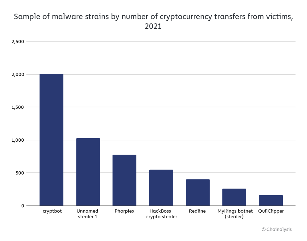Криптобот (Cryptobot) стал самым популярным вредоносным программным обеспечением (ПО) по итогам 2021 года. Об этом у себя в блоге сообщили эксперты Chainalysis. Программа предназначена для кражи информации, включая данные криптовалютных кошельков. За прошедший год злоумышленники смогли заработать почти $500 000 в украденных биткоинах через криптобота.