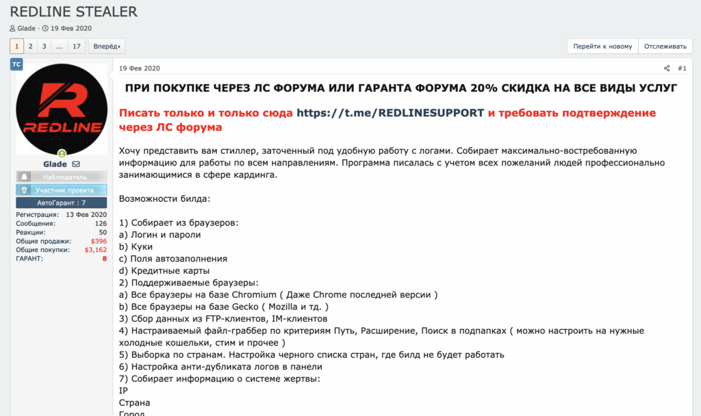 Покупаются такие ПО за относительно небольшую плату на русскоговорящих форумах, отметили в Chainalysis. Кроме того, дистрибуторы вредоносного ПО даже предлагают различные подписки для желающих купить вирусы. Например, аналитики выяснили, что за месяц доступа к вредоносному ПО Redline дистрибуторы просят $150, а за бессрочный доступ — $800.