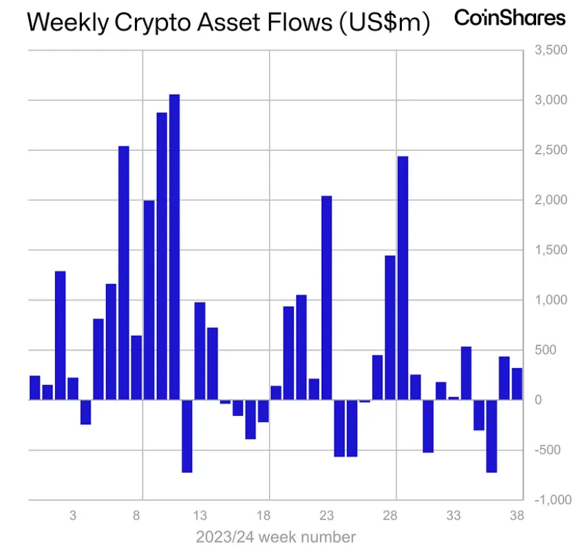 На прошлой неделе — с 16 по 20 сентября — в инвестиционные продукты на базе криптовалют вложили $321 млн