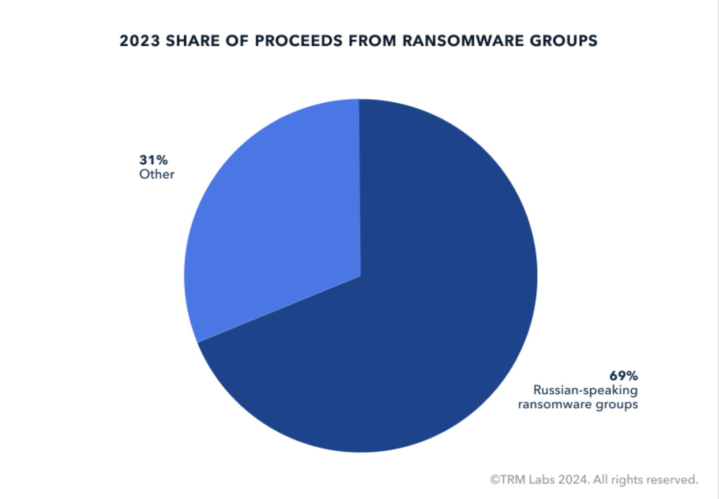 В 2023 году русскоязычные хакерские группировки заработали не менее 69% всех доходов от атак программ-вымогателей, которые в общей сложности превысили $500 млн