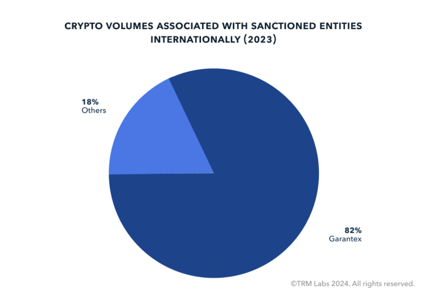 В 2023 году на российскую криптобиржу Garantex пришлось 82% от общего объема криптоопераций, связанных с подсанкционными организациями. Garantex находится под санкциями Управления по контролю за иностранными активами (OFAC) с 2022 года.