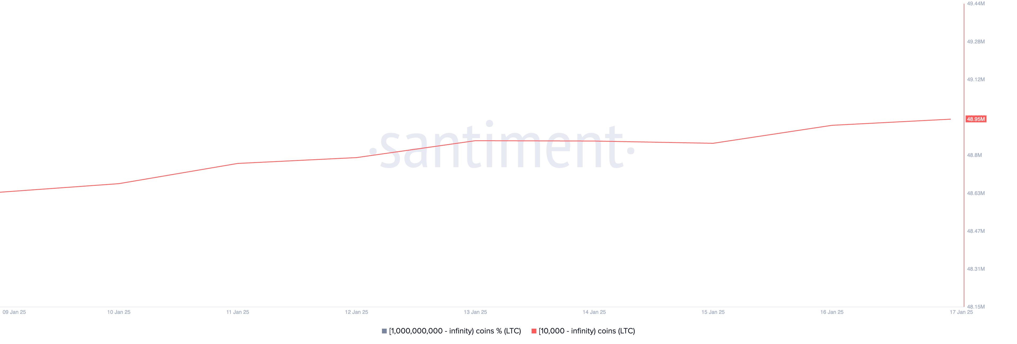 Litecoin (LTC) также привлек внимание крупных инвесторов на этой неделе. За последние семь дней адреса, владеющие более чем 10 000 монетами, приобрели 300 000 LTC на сумму более $41 млн.