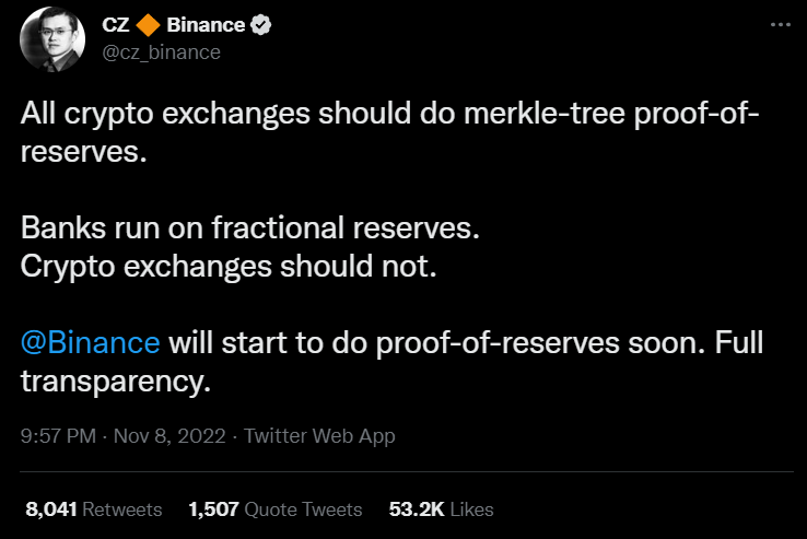 Основатель Binance Чанпэн Чжао на фоне опасений монополизации написал в твиттере, что биржа в скором времени проведет аудит всех своих резервов для соблюдения «полной прозрачности».