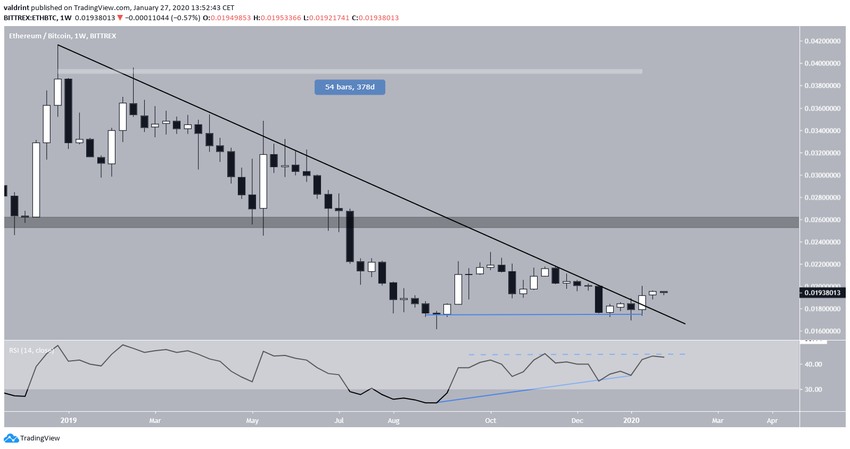 Курс ETH с конца декабря 2018 года двигался вдоль линии нисходящего сопротивления. Лишь спустя 378 дней быкам удалось пробить ее.