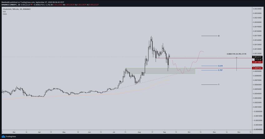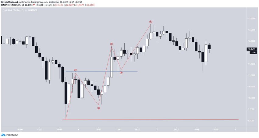 SponsoredСнижение продолжалось, пока LINK не достиг 5 сентября минимум на $9.10. Отсюда цена незамедлительно отскочила, сформировав на следующий день свечу бычьего поглощения.