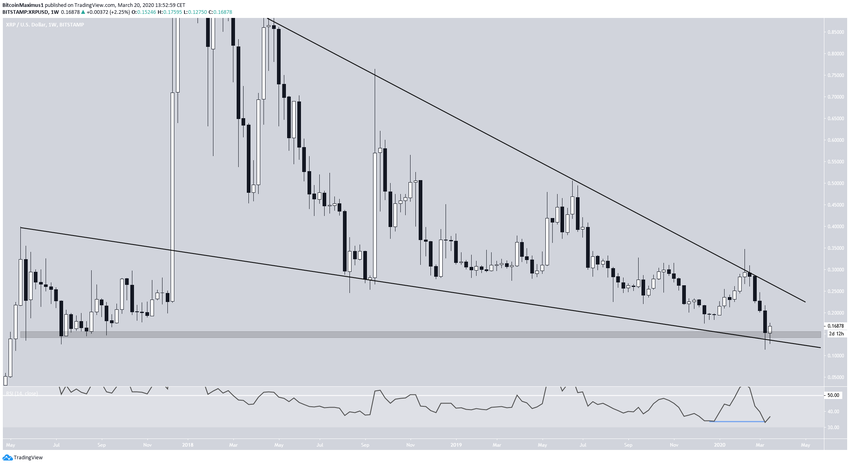 12 марта курс XRP нырнул под важную область поддержки $0.15. Почти неделю цена консолидировалась под этой поддержкой, но 19 марта смогла восстановиться над ней.
