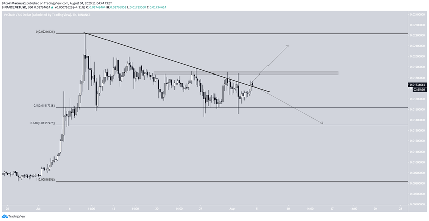 VET растет с марта, когда котировки коснулись минимума $0.0013. При этом ралли протекало довольно стремительно – подъем от вышеупомянутого минимума до зафиксированного в июле максимума $0.0220 составил 1500%.
