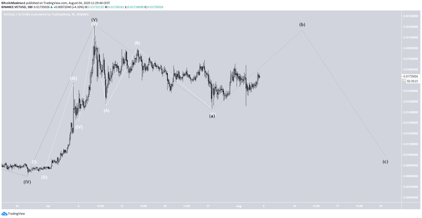 Итак, VET, возможно, уже завершил подъем и перешел в режим коррекции. Но даже в этом случае ожидается рост перед финальной волной снижения, которая ознаменует завершение коррекции.