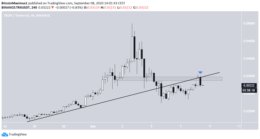 В период обвала на рынках 2-4 сентября курс Tron сумел вырасти, но цена отскочила от важного сопротивления и растеряла большую часть очков, набранных на предыдущей неделе.