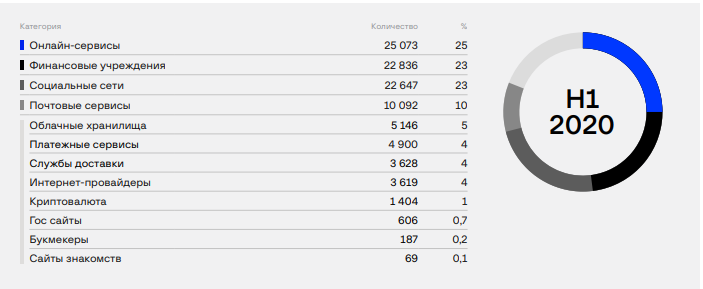 На криптовалюты за первое полугодие 2020 года пришлось всего 1% фишинга от общемировых атак. К таким выводам пришли аналитики Group-IB в своем новом отчете, копия которого есть в распоряжении редакции. Согласно результатам исследования андеграундного рынка, за первую половину 2021 года больше всего пострадали онлайн-сервисы (Microsoft Live, Office 365, Google Account).