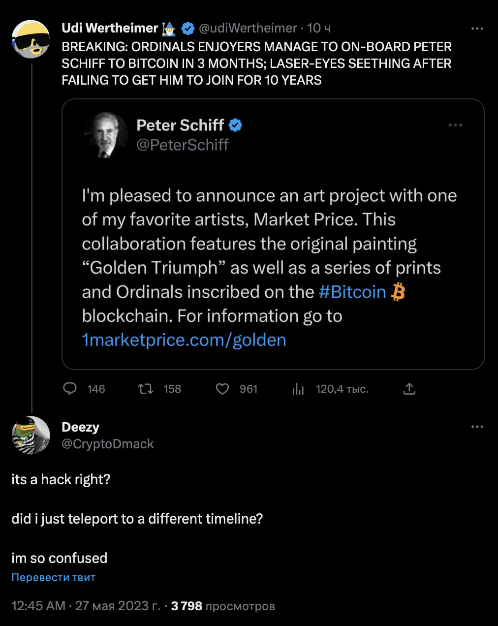 Реакция участников криптосообщества на заявление Шиффа оказалась неоднозначной. Некоторые недоумевали, другие — особенно поклонники протокола Ordinals — поприветствовали его шаг, третьи — указали на очевидное лицемерие.