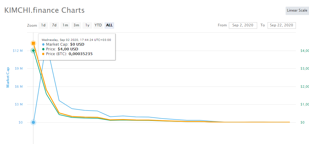 Это уже не первый проект на рынке децентрализованных финансов (DeFi), потерпевший крушение после краткосрочного пампа цены. Так, например, схожая ситуация ранее произошла с токеном KIMCHI, который за считанные часы после запуска привлек почти $500 млн, но почти сразу обрушился на 100% в цене.