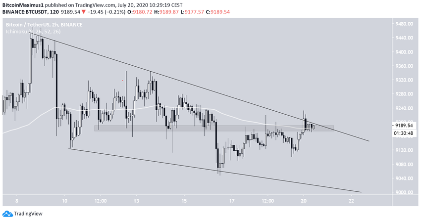 Бычий пробой клина может стать сигналом о том, что цена восстановится над областью $9250. Тем временем медвежий прорыв вышеупомянутой области поддержки может отправить цену в направлении линии поддержки клина, которая также совпадает с упомянутой выше линией долгосрочной восходящей поддержки.
