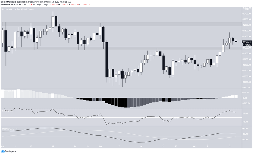 Бычий пробой области $11 450 и превращение ее в поддержку укажет на потенциал дальнейшего роста биткоина.