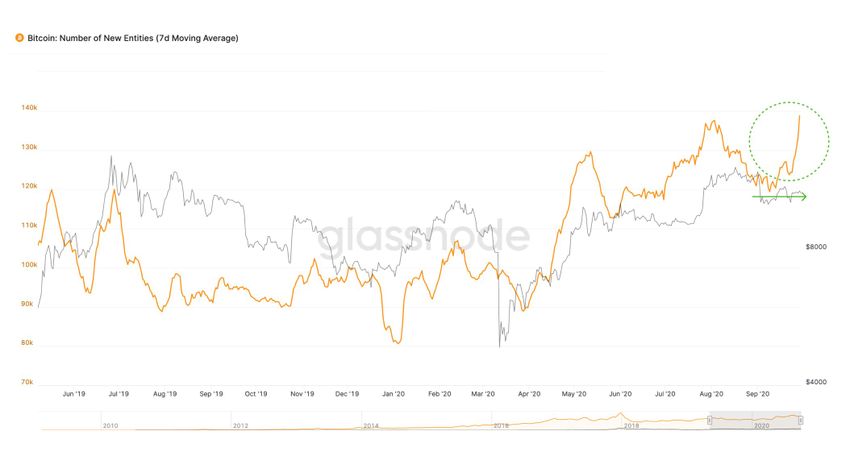 SponsoredДействительно, данные аналитической платформы Glassnode указывают на существенный рост числа новых участников в сети BTC. По большому счету, это еще не гарантия того, что данный фактор неминуемо повлечет взлет курса BTC. По крайней мере, на данный момент на рынке, где главная монета топчется в ограниченном боковом диапазоне, наблюдается фаза умеренной аккумуляции.