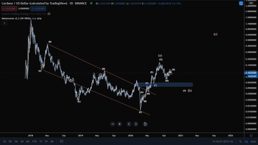 SponsoredХотя мы не можем с уверенностью предсказать заключительную часть этого хода (рост), кажется вполне вероятным, что курс ADA снизится к области поддержки $0.07, выделенной нами в начале анлиза.