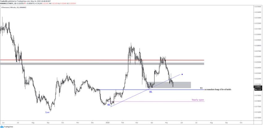 Sponsored$ETHBTC – пара наконец-то подходит к уровню, на котором я планирован спекулятивную покупку Ethereum. Цена должна удержаться на этом уровне, иначе котировки с большой долей вероятности опустятся к уровням открытия 2020 года, где также присутствует интерес к покупкам.