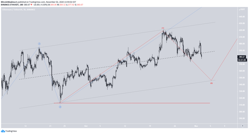 Итак, Ethereum остается в русле нисходящего тренда с момента обвала 3 сентября, и текущий подъем носит коррективный характер. Утрата уровня $310 подтвердит это предположение.