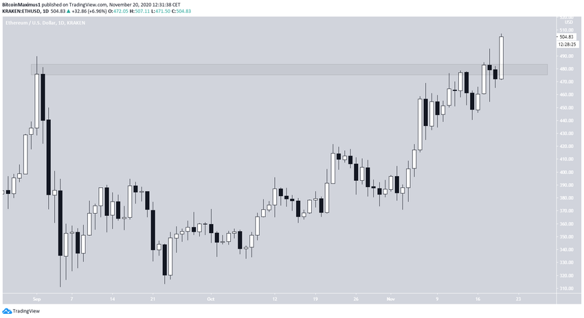 Ethereum совершил бычий пробой области сопротивления $490 и обновил максимум этого года. Впрочем, впереди маячит важное долгосрочное сопротивление, которое может спровоцировать отскок цены.