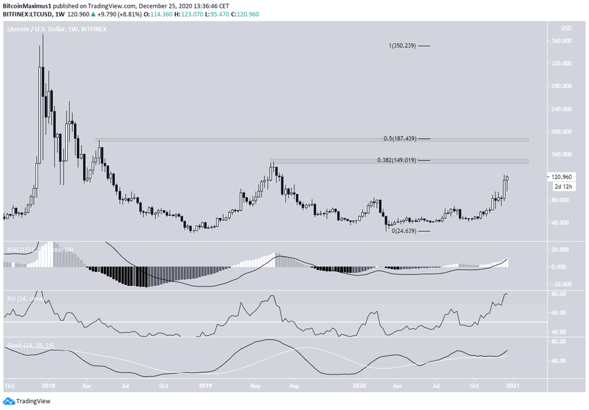 Как и на недельном и дневном графиках, технические индикаторы здесь подают бычьи сигналы. Соответственно, курс LTC может продолжить рост в направлении $149 и, возможно, $187.