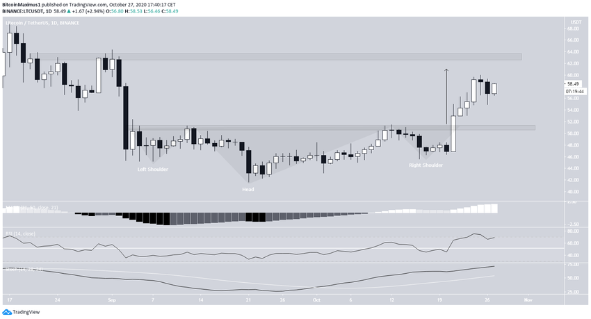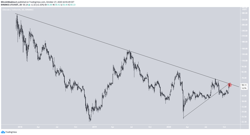 Курс Litecoin (LTC) приближается к важному уровню сопротивления $63, бычий пробой которого станет указанием на бычий тренд по валюте.