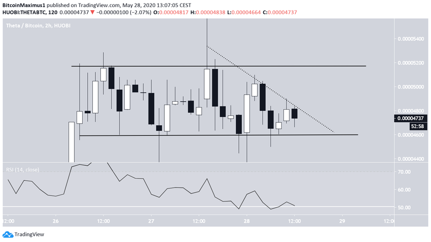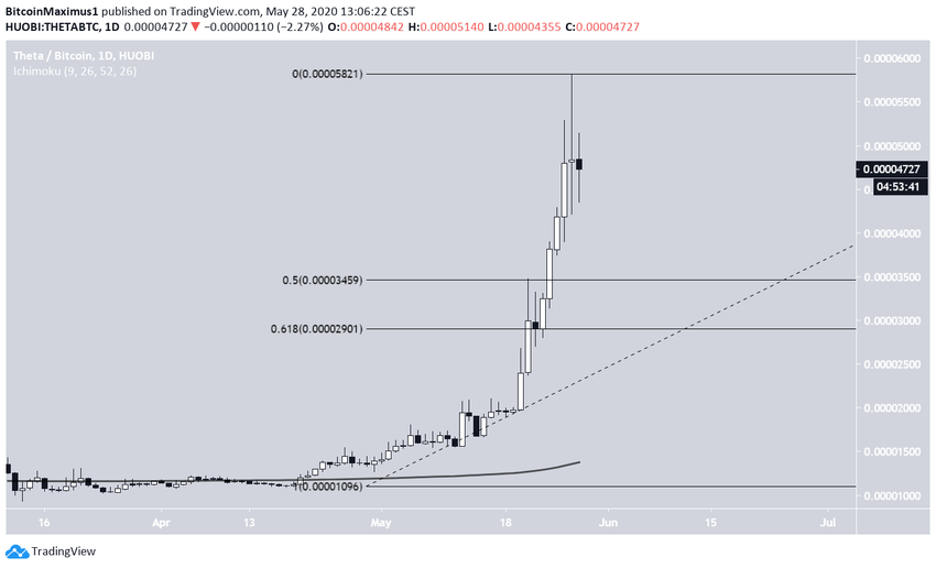 27 мая курс криптовалюты THETA торговался внутри диапазона 4207-5813 сатоши, причем верхняя граница ознаменовала собой исторический максимум.