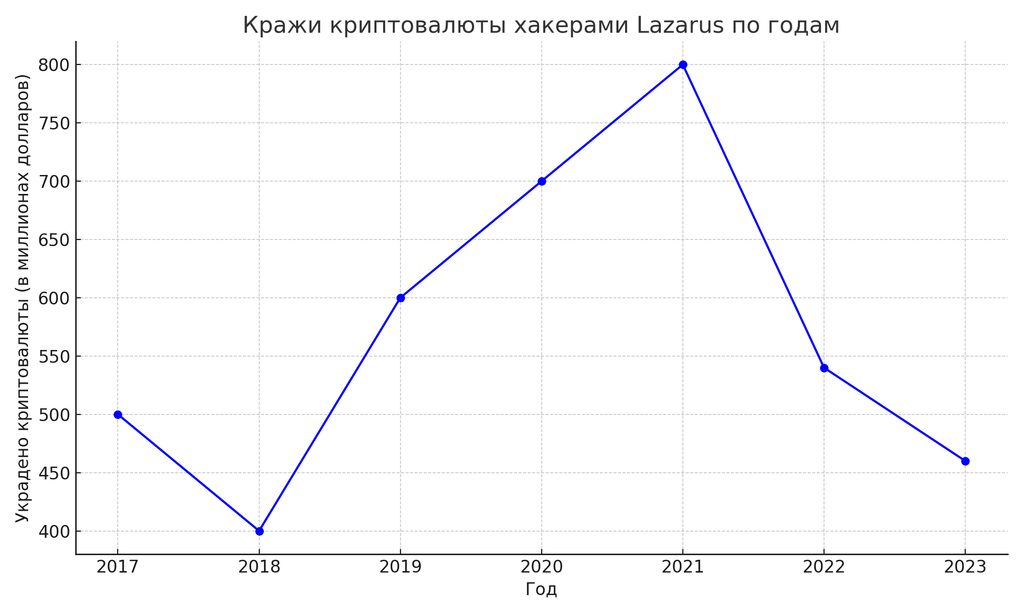 По данным Recorded Future, за шесть лет хакеры Lazarus похитили более $3 млрд в криптовалюте. Для сравнения, такая сумма превышает совокупные доходы от экспорта страны за год.