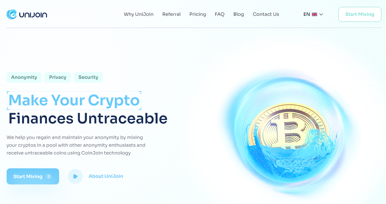 UniJoin – криптовалютный миксер, который смешивает криптовалюту в пуле с другими коинами, а затем возвращает пользователям неотслеживаемые монеты. Сервис использует технологию CoinJoin, которая, по словам создателей UniJoin, обеспечивает самое высокое качество и наиболее оптимизированный метод смешивания.