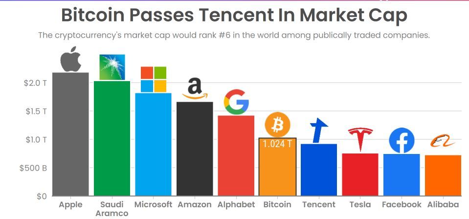 - Капитализация рынка цифровых активов неуклонно растет. Уже в начале 2021 года биткоину удалось обогнать показатели ряда крупных компаний.