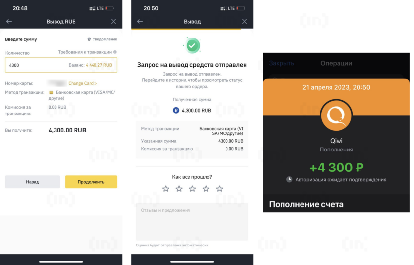 Вывод рублей на банковскую карту торговая площадка также осуществляет через Qiwi.