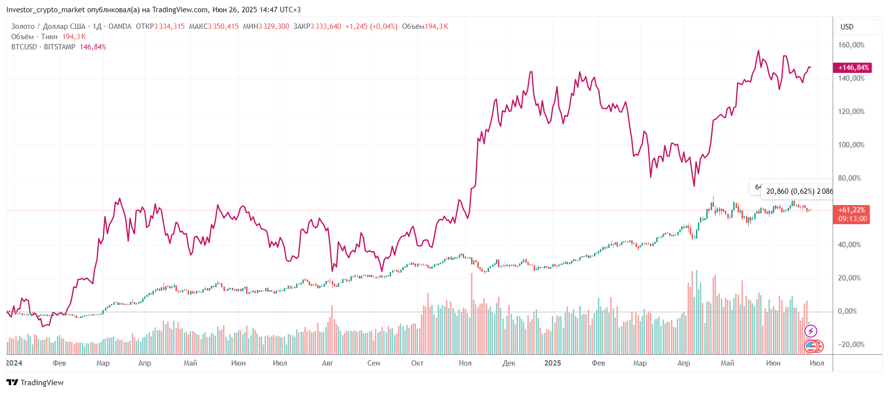 Так сложилось, что исторически золото считают «тихой гаванью». Драгметалл ведет себя стабильно, когда на рынках начинается шторм. Биткоин постепенно зарекомендовал себя как современная альтернатива золоту. В 2025 году сравнение этих двух активов уже не теоретическое — мы наблюдаем его в реальном времени. Рассказываем, как отличается поведение биткоина и золота, что дает большую доходность, и на какие подводные камни обратить внимание.