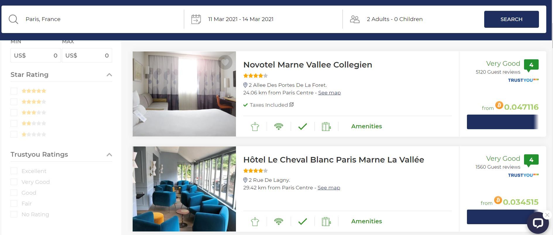 Для поиска жилья с оплатой в цифровых активах можно воспользоваться сервисом бронирования Travala.