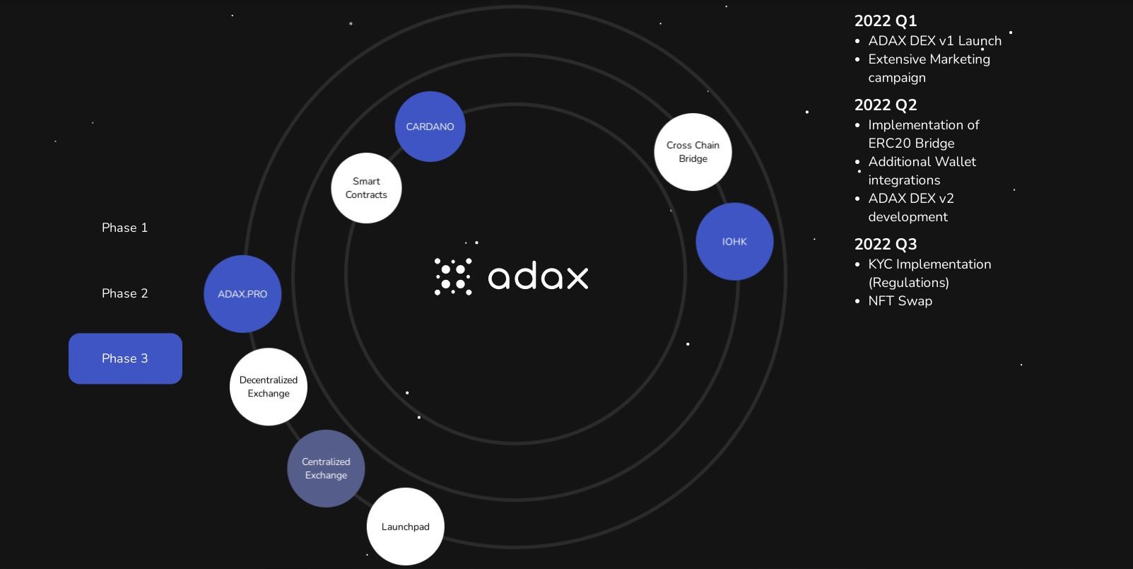 ADAX – это децентрализованная биржа (DEX) цифровых активов на блокчейне Cardano. Официальный запуск торговой платформы запланирован на конец января 2022 года.