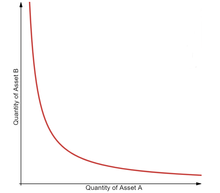 Наиболее распространенная формула для расчета цены, которую используют большинство автоматических маркет-мейкеров, это — x * y = k, где x представляет собой предложение актива A, а y – предложение актива B. K — постоянный коэффициент, отражающий общую ликвидность, доступную в пуле.