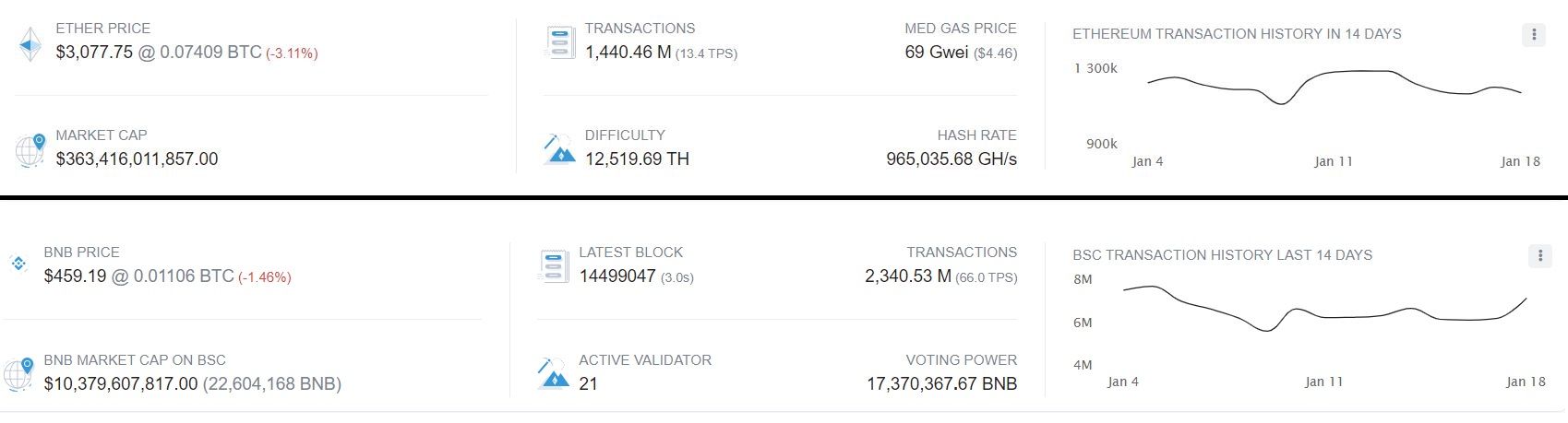 Сравнение показателей BSC и Ethereum (по состоянию на момент написания обзора):