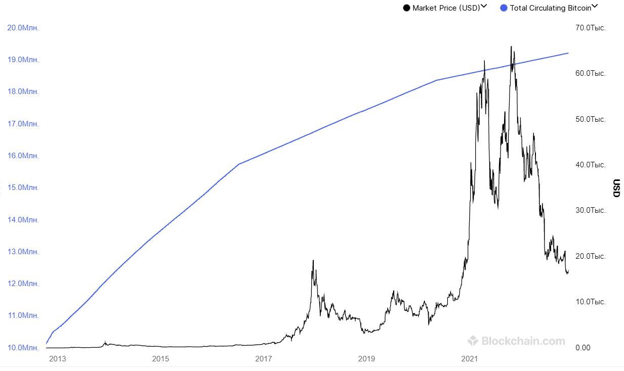 - Снижение награды за майнинг, из-за уменьшения притока биткоинов на рынок на фоне роста интереса пользователей к криптовалютам, формирует дефицит BTC. Рост спроса на биткоин на фоне уменьшения предложения толкает курс монеты вверх.