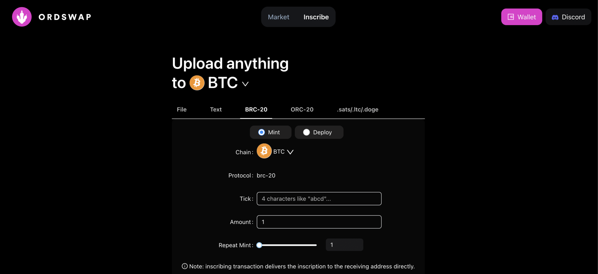 - Ordswap — первый маркетплейс ординалов и токенов BRC-20 с функцией хранения