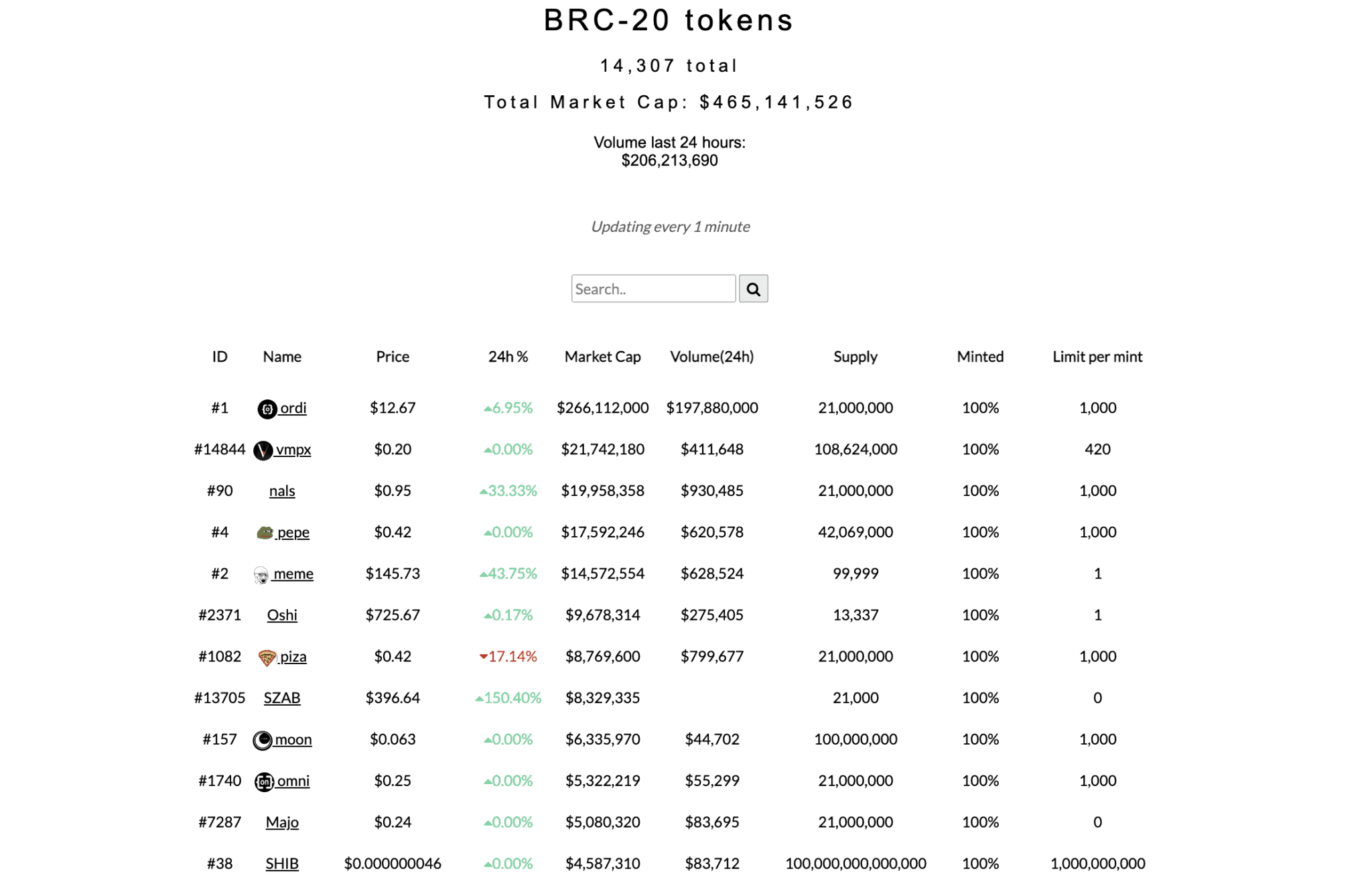 По данным торговой платформы BRC-20.io, в середине мая существовало 14 307 токенов с общей рыночной капитализацией более $465 млн.
