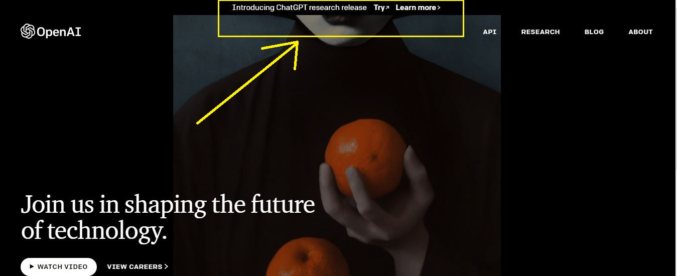 Перейдите на сайт OpenAI и нажмите на кнопку Try в верхней части интерфейса сайта.