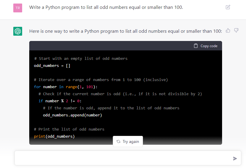 Кроме того, чат-бот можно использовать для написания программного кода.