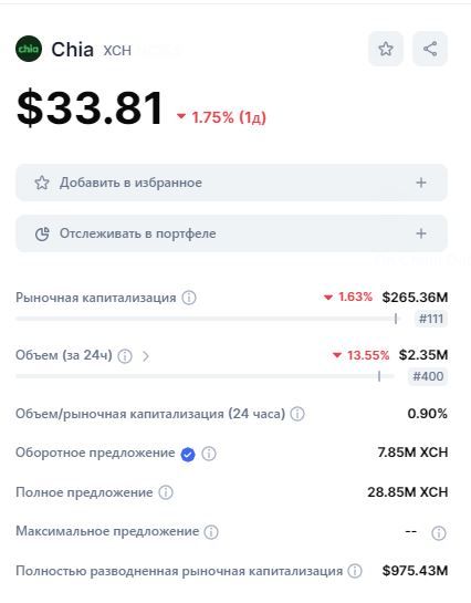 Chia (XCH) – это нативный токен Chia Network. Криптовалюта нужна для поощрения участников проекта. Именно в XCH фармеры получают награду за предоставление свободного места на своих жестких дисках под нужды сети.