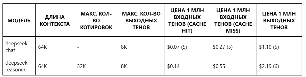 - Для модели deepseek-reasoner нужно учитывать как токены, использованные в цепочке размышлений (CoT), так и токены финального ответа.