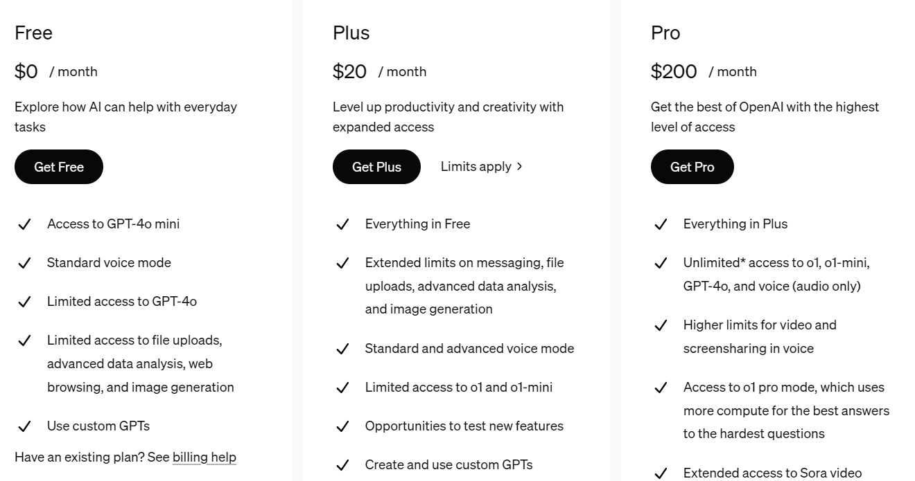 ChatGPT по-другому считает оплату. За чат-бот нужно платить по тарифам: ежемесячно, либо за год. Есть разные тарифные планы, в зависимости от потребностей.