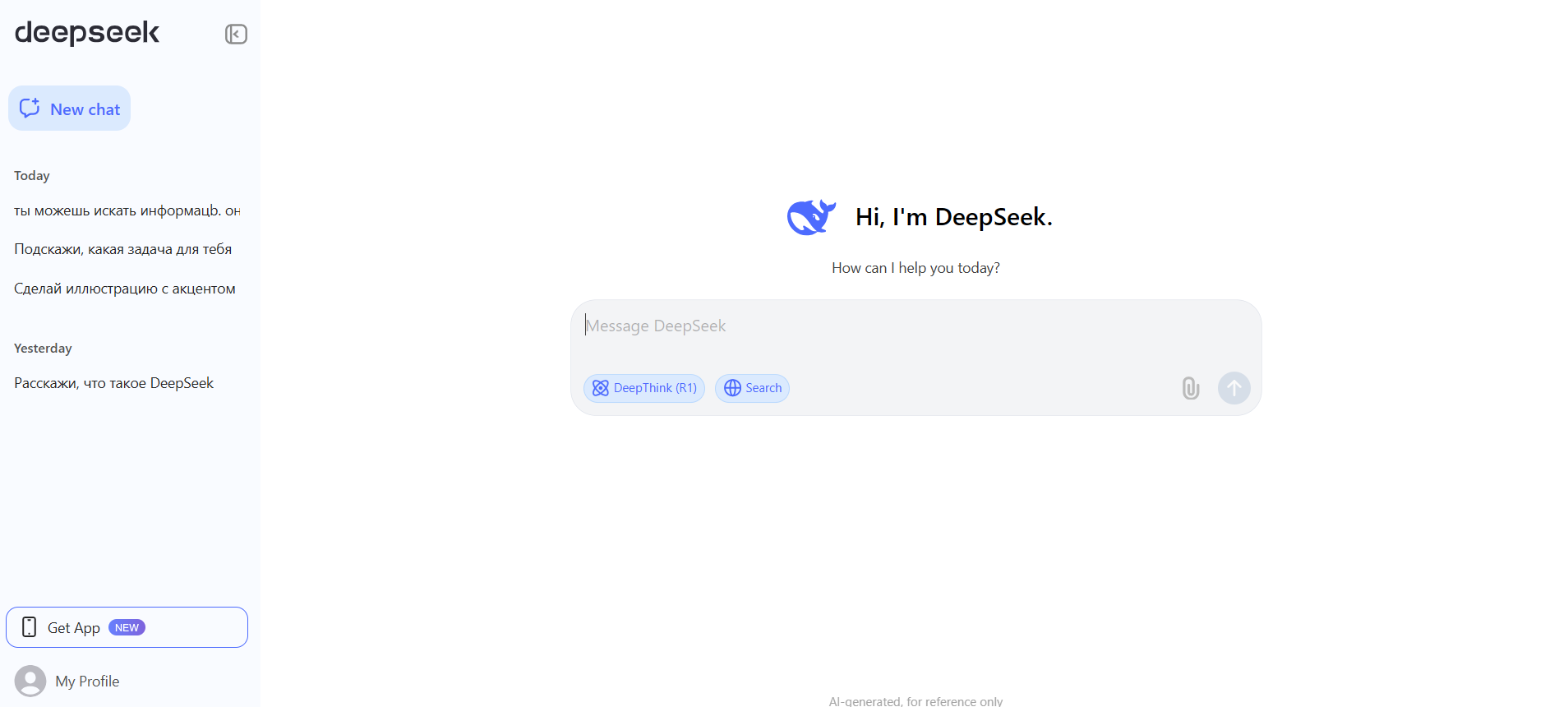 У компании есть одноименный чатбот — DeepSeek. Программа представляет собой искусственный интеллект, который работает на базе NLP. Она доступна как в браузере, так и в формате мобильного приложения. Языковая модель прекрасно понимает русский.