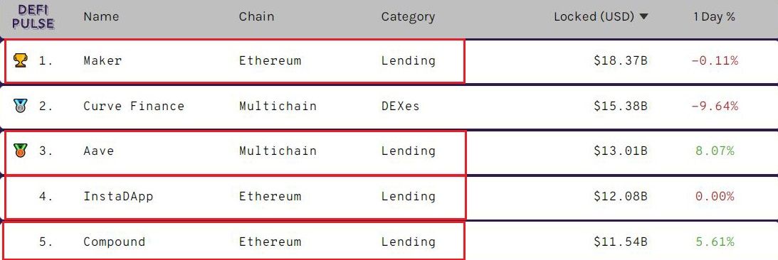 Интересно! По состоянию на конец ноября 2021 года, 4 из 5 крупнейших по совокупному объему заблокированных под их нужды средств DeFi-протокола занимаются выдачей займов.